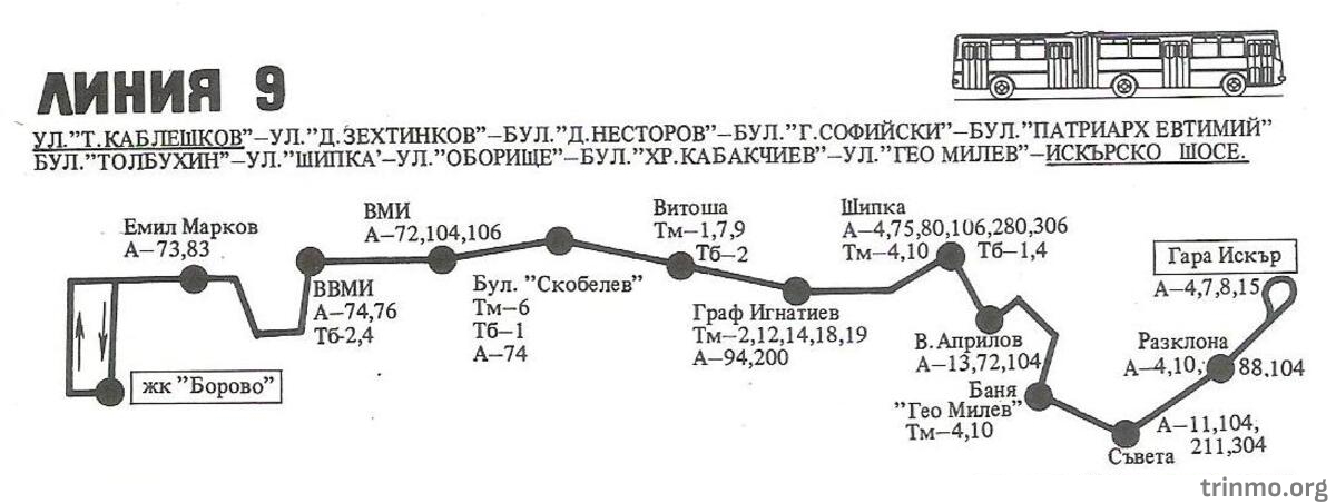 | ℹ️ Маршрут и спирки на автобусна линия 9 през 1978 г. | Пътеводител на градския пътнически транспорт в София |